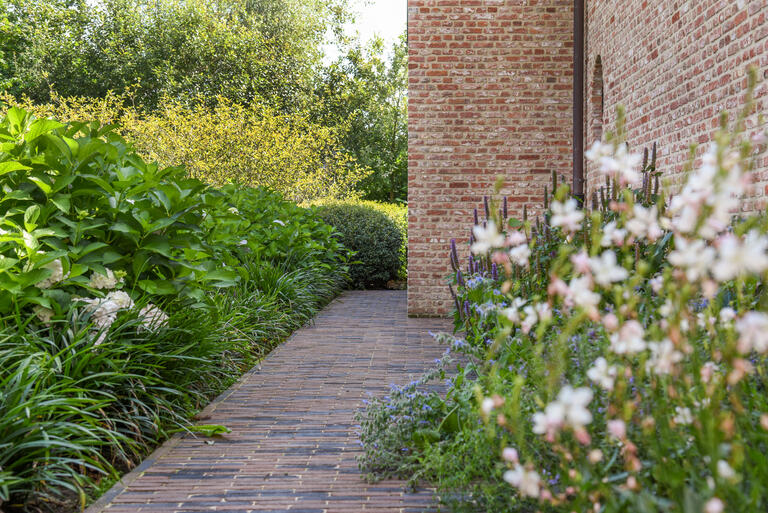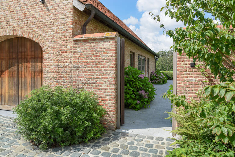 Bij deze landelijke nieuwbouwwoning met bijgebouw zorgt het totaalconcept voor de tuin, verhardingen en buitenzwembad voor een prefecte integratie in de landelijke omgeving.