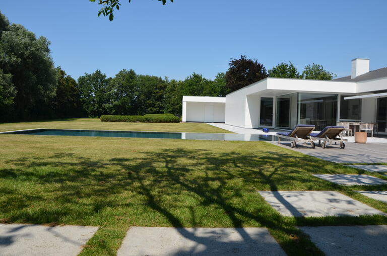 Renovatie van terrassen en tuin na verbouwing van villa.
