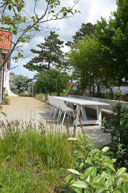 Deze tuin werd sfeervol heraangelegd na grondige renovatie van de woning. Plantenkeuze en materialen werden aangepast aan de omgeving.